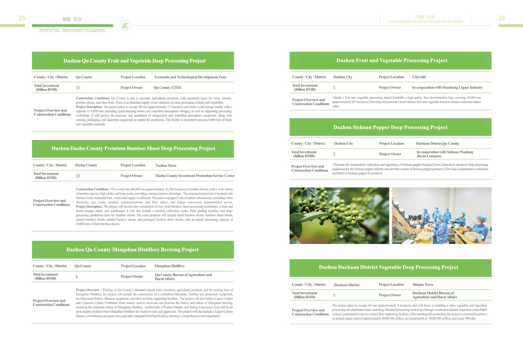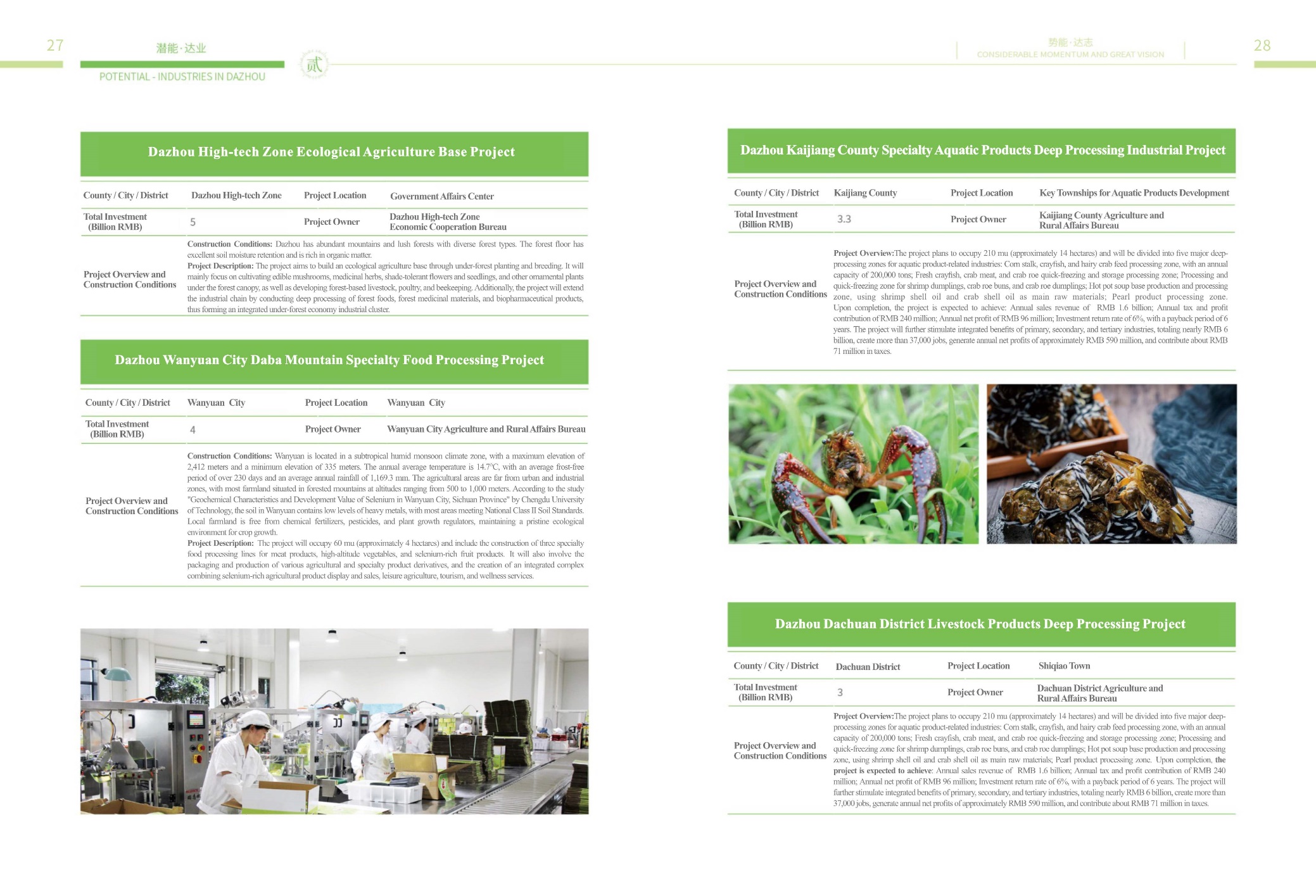 LIST OF INVESTMENT OPPORTUNITIES OF DAZHOU