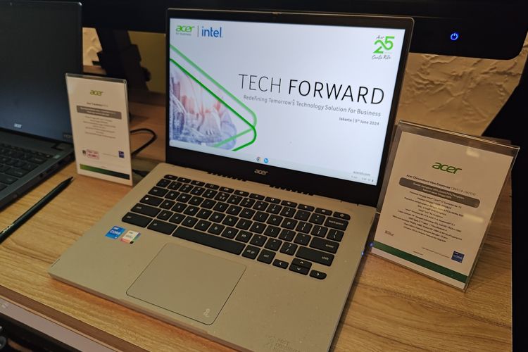 KOMPAS.com/BILL CLINTEN Dalam rangka merayakan hari jadinya yang ke-25,Jakarta Pusat pada Rabu (5/6/2024). Salah satu yang dipamerkan adalah Acer Chromebook Vero Enterprise