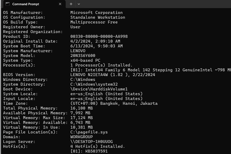 4. Cara cek spek laptop Windows 10 via Command Prompt