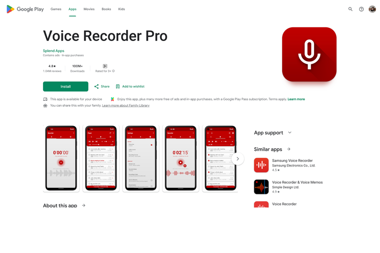 Google Play Store Voice Recorder Pro