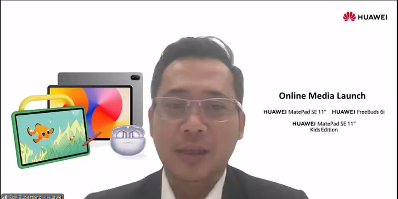 KOMPAS.com/Lely Maulida Edy Supartono,Training Director Huawei Device Indonesia dalam acara peluncuran Huawei MatePad SE 11,MatePad SE 11 Kids Edition,dan TWS Freebuds 6i yang dilakukan secara daring via Zoom,Jumat (19/7/2024).