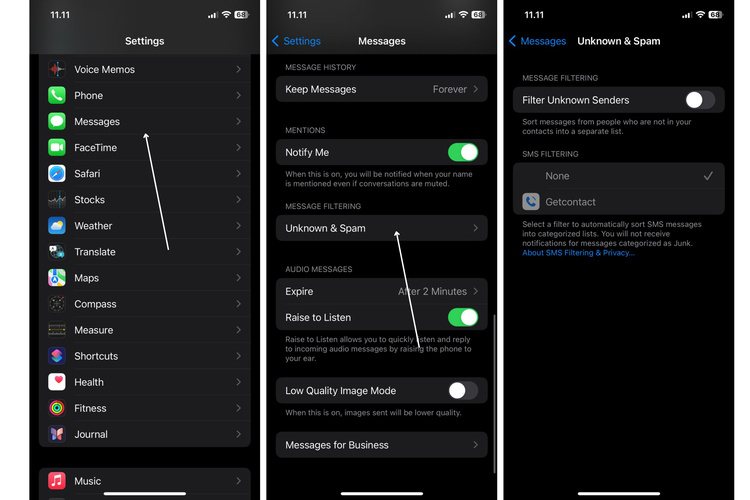 Namun pengguna iPhone bisa mengatasinya dengan melakukan filter SMS spam di iPhone atau mengatur notifikasi SMS. Dengan menggunakan filter pesan,ini akan membantu pengguna tidak terus menerus menerima pesan yang diterima dari nomor tak dikenal maupun spam/promosi.