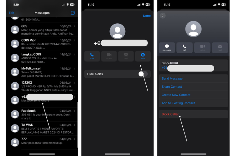 Buka pesan dari nomor tak dikenal yang ingin diblokir