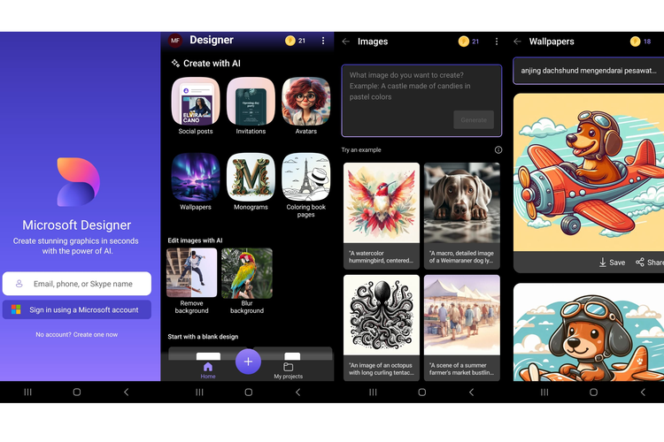 KOMPAS.com/Mikhaangelo Fabialdi Nurhapy Tampilan Microsoft Designer di perangkat mobile