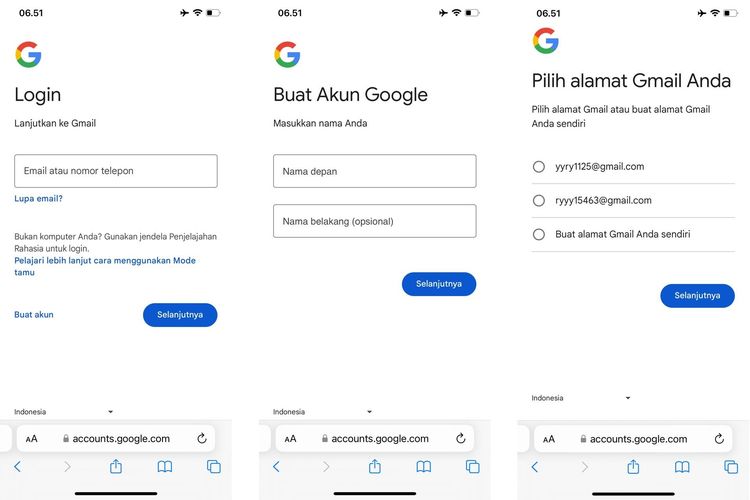 Setelah itu,pengguna diminta untuk membuat alamat Gmail dengan nama identitas yang sesuai keinginan.