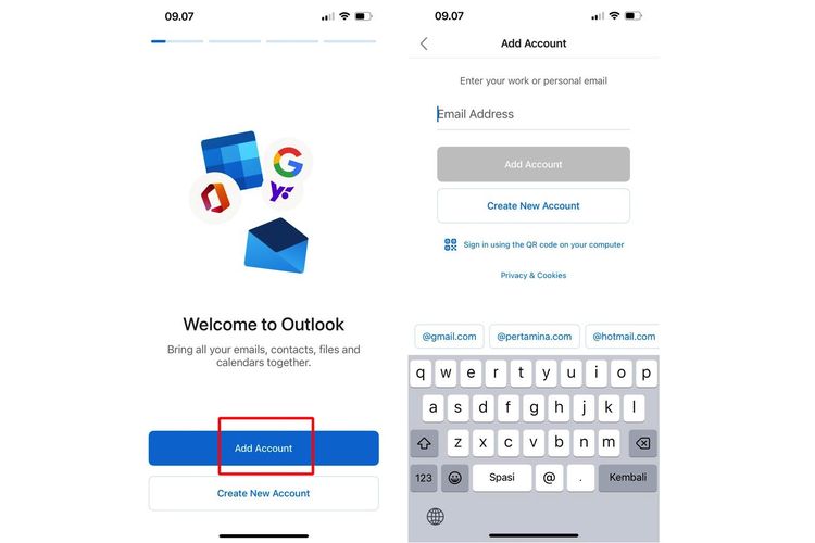 Kemudian,tambahkan akun e-mail atau alamat e-mail umum seperti dari Gmail atau Yahoo Mail di Microsoft Outlook.