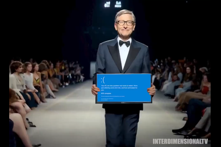 YouTube CEO Meta Mark Zuckerberg dalam video AI fashion show yang dibagikan oleh Elon MuskAdapun hal ini merujuk pada teori konspirasi bahwa Zuckerberg merupakan manusia kadal alias lizard person. Konspirasi ini muncul karena adanya pengguna yang menilai cara bicara dan gerak-gerik Zuckerberg,aneh dan tidak "mirip" manusia.Video AI tersebut pun diakhiri dengan Bill Gates yang mengenakan jas hitam putih,berbeda dari berbagai tokoh sebelumnya yang memakai kostum yang unik,sebagaimana dikutip KompasTekno dari X,Kamis (25/7/2024).Bill Gates tampak tersenyum sambil membawa laptop,yang layarnya dihias tulisan "Runway of Power". Tulisan tersebut pun berubah menjadi eror Blue Screen of Death (BSOD) yang belakangan ini menjadi perbincangan.
