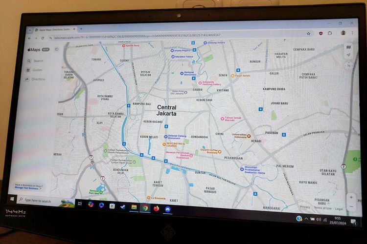 KOMPAS.com/Mikhaangelo Fabialdi Nurhapy Tampilan Apple Maps versi web. Apple Maps ini sudah mendukung peta Indonesia.