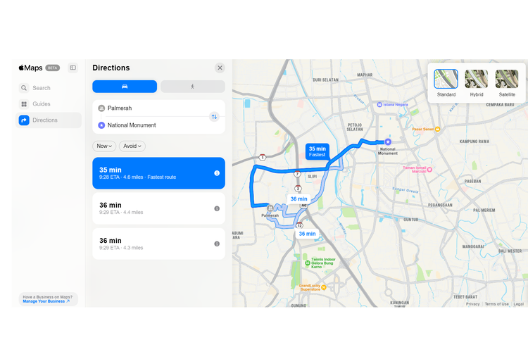 Apple Maps versi web saat ini masih dalam tahap beta,tetapi bisa diakses secara publik dan gratis di tautan berikut ini.
