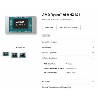 AMD Laman prosesor Ryzen AI 9 HX 375 di situs AMD