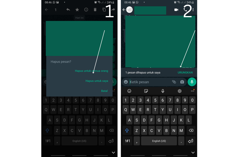 1. Cara mengembalikan chat WA yang terhapus dengan urungkan hapus pesan