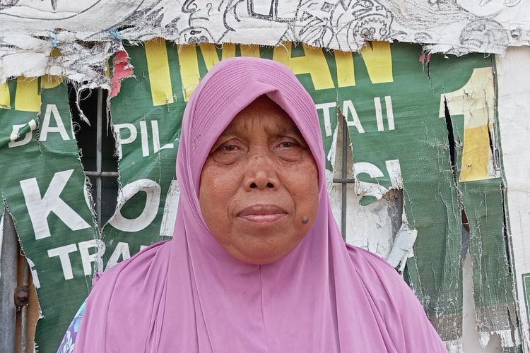 Ibu 64 tahun ini masih terengah-engah setelah berjalan kaki menyusuri rel dari indekosnya di Gang Spoor untuk sampai ke tempatnya biasa jualan.