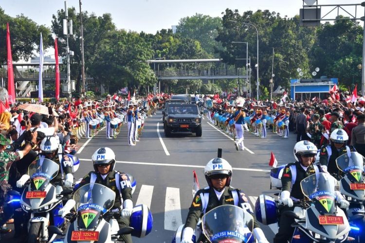 Dok. Sekretariat Presiden Suasana kirab duplikat bendera pusaka merah putih dan naskah proklamasi yang dibawa dengan kendaraan taktis Maung dari Monas menuju ke Halim Perdanakusuma,Jakarta Timur pada Sabtu (10/8/2024).
