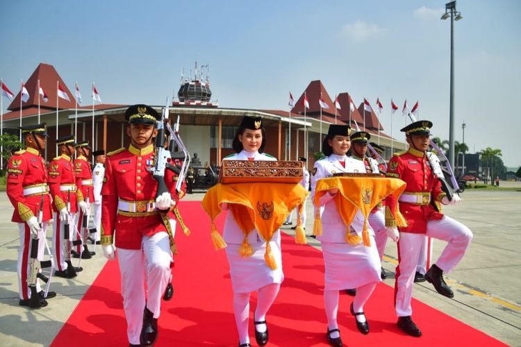 JAKARTA,iDoPress - Setelah menempuh perjalanan darat melalui prosesi kirab di Jakarta,duplikat bendera pusaka merah putih dan teks proklamasi diterbangkan menuju Balikpapan,Provinsi Kalimantan Timur,Sabtu (10/8/2024).