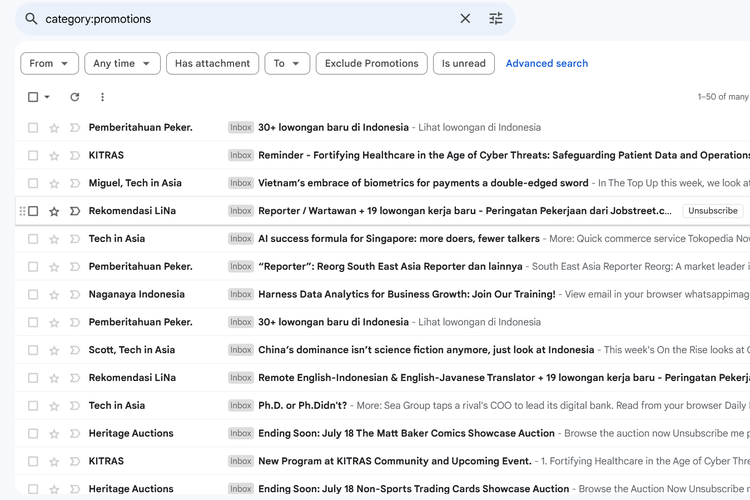 Selanjutnya,Gmail akan menampilkan semua e-mail promosi yang masuk.