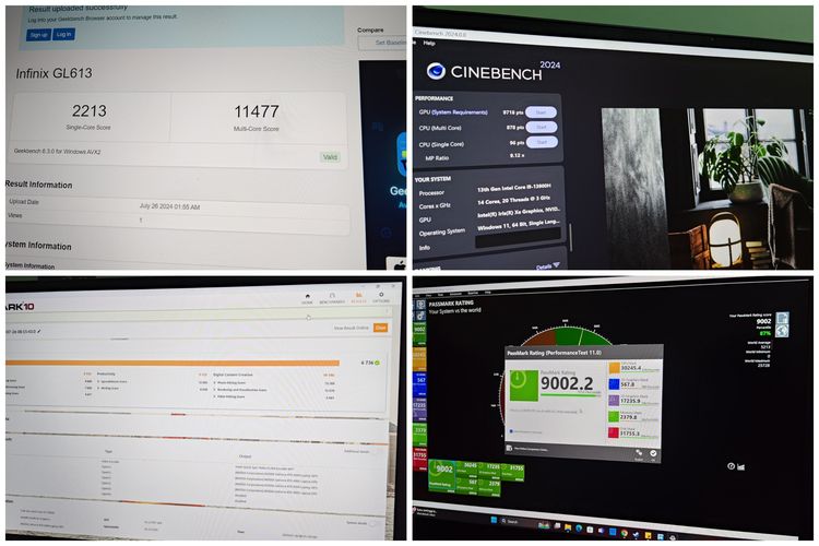 Kompas.com/BILL CLINTEN Hasil benchmark Geekbench,Cinebench,PCMark,dan PassMark.
