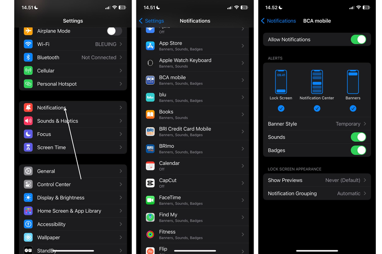 Cara menonaktifkan notifikasi mobile banking di iPhone