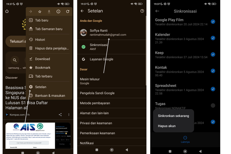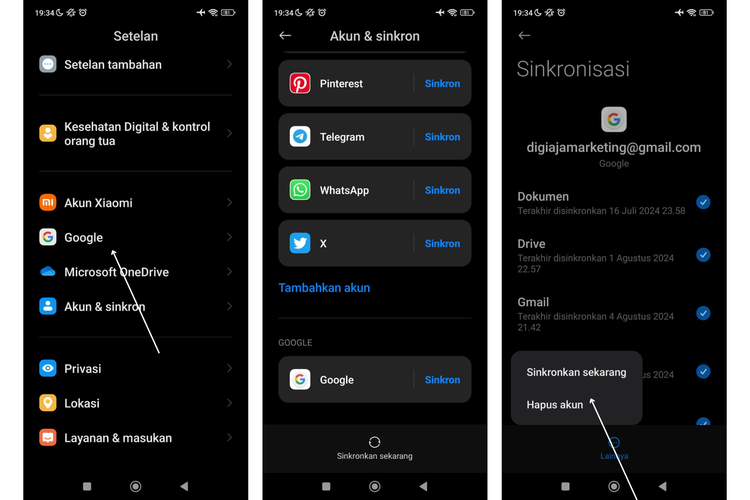 Nantinya akun Google tersebut sudah tidak terhubung dan sinkronisasi di HP Android
