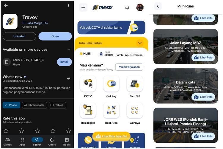 Kompas.com/BILL CLINTEN Cara mengunduh dan memakai aplikasi Travoy untuk memantau CCTV di depan Gedung DPR RI.