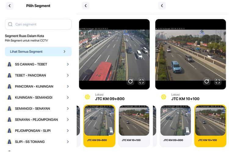 Apabila sudah,geser tampilan CCTV ke lokasi "JTC KM 09+800" atau "JTC KM 10+100" untuk memantau situasi terkini di depan Gedung DPR RI.