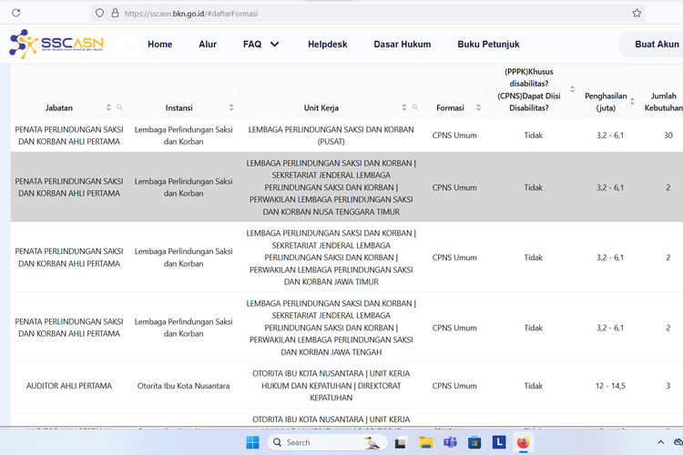 Di daftar tersebut,peserta dapat melihat rincian formasi yang dibuka,seperti jabatan,unit kerja,jenis formasi,jumlah kebutuhan,dan penghasilan.