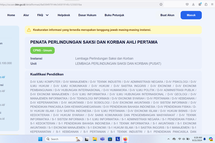 Setelah itu,peserta bakal bisa melihat daftar formasi yang dibuka di tiap instansi sesuai kunci pencarian yang dimasukkan.