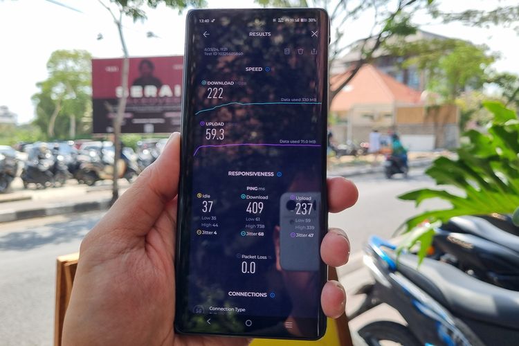 Pengalaman kami,Untuk uji jaringan 5G Telkomsel di Bali ini KompasTekno menggunakan aplikasi Speedtest dari Ookla serta dua perangkat berbeda yakni Huawei Mate 40 dan Vivo X Fold 3 Pro.