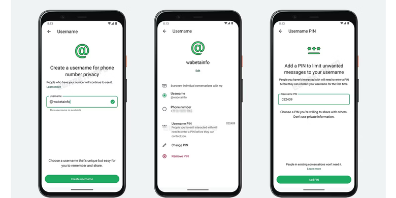 Fitur username dan PIN ini masih dalam tahap pengembangan. WABetaInfo menyebut bahwa username dan PIN baru tersedia di aplikasi WhatsApp Android versi v2.24.18.2.