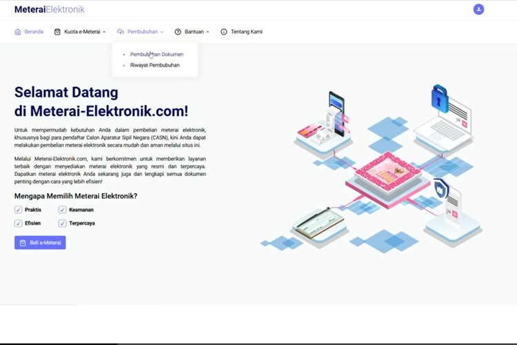 Setelah itu,pilih menu “Beli e-meterai”.