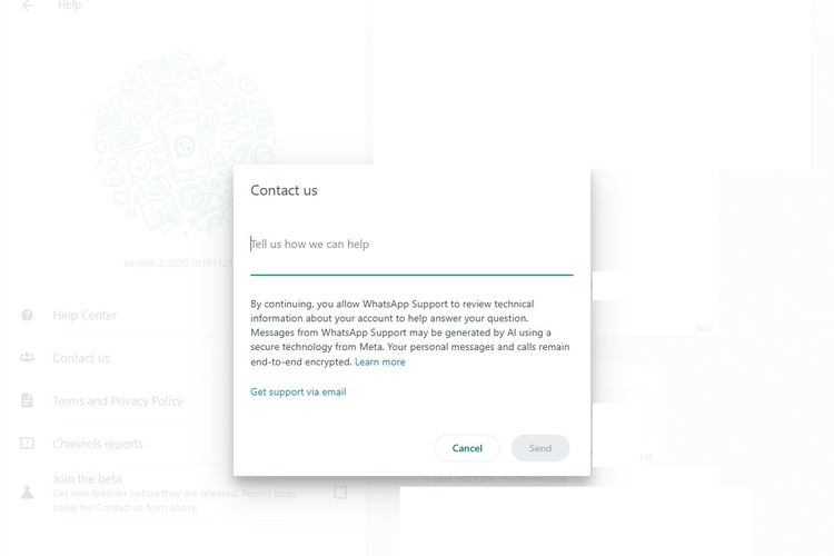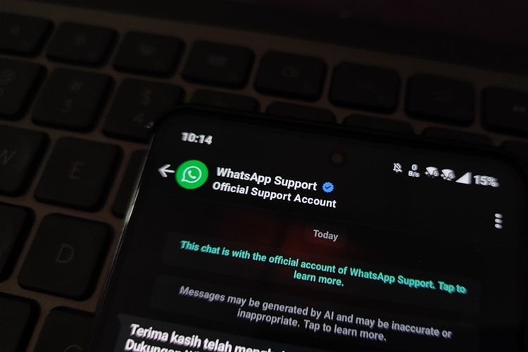 Dalam tampilan yang sama,terdapat keterangan bahwa jawaban dari tim WA mungkin merupakan olahan AI yang dikembangkan oleh induk WhatsApp,Meta. Lewat tampilan ini pihak WA juga menegaskan bahwa chat maupun telepon pengguna dengan timnya,dilindungi oleh enkripsi end-to-end.