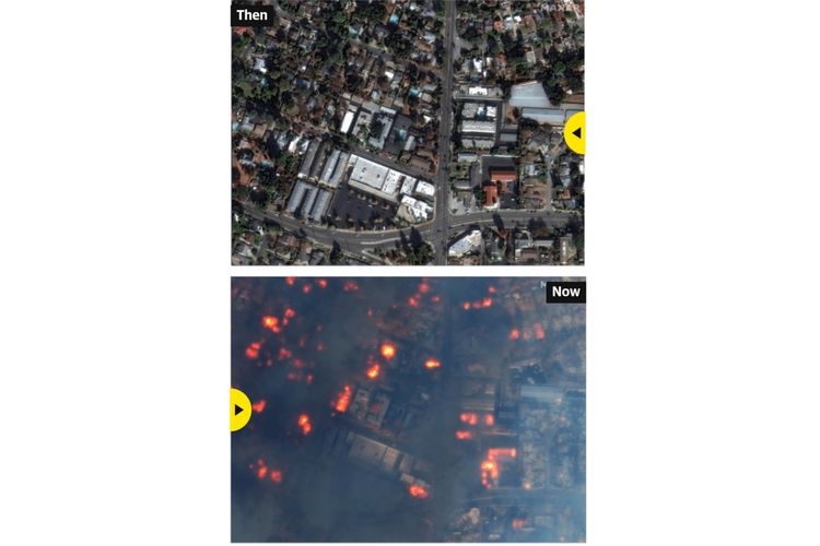 Di Altadena,di balik pegunungan di utara Los Angeles tempat kebakaran Eaton terjadi,citra satelit menunjukkan kobaran api yang melahap bangunan dan rumah warga.
