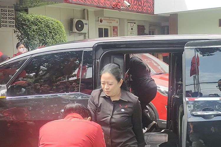 Pengamatan Kompas.com,Puan tiba pukul 13.38 WIB menggunakan mobil berwarna hitam.