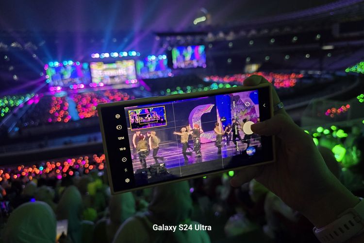 KOMPAS.com/ Galuh Putri Riyanto Dari tribun GBK,Samsung S24 Ultra bisa diandalkan untuk merekam fancam NCT Dream lebih dekat di atas panggung.