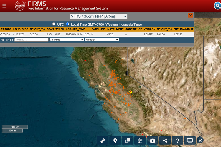 Situs web ini,yang bernamaFire Information for Resource Management System (FIRMS),menampilkan data dan statistik soal titik-titik yang terkena dampak kebakaran.