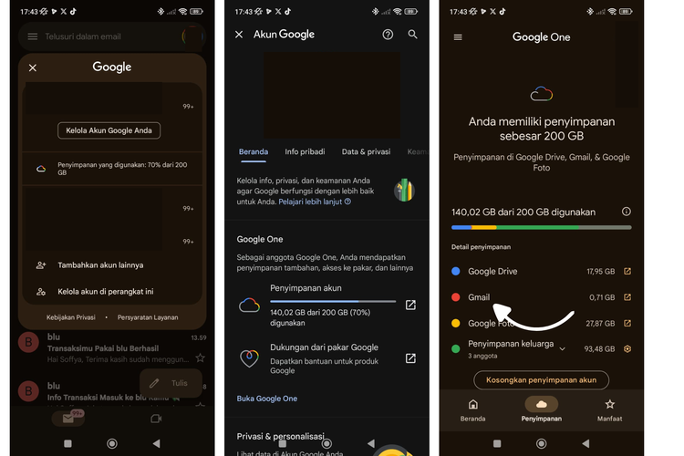 Cara cek kapasitas penyimpanan Gmail di HP