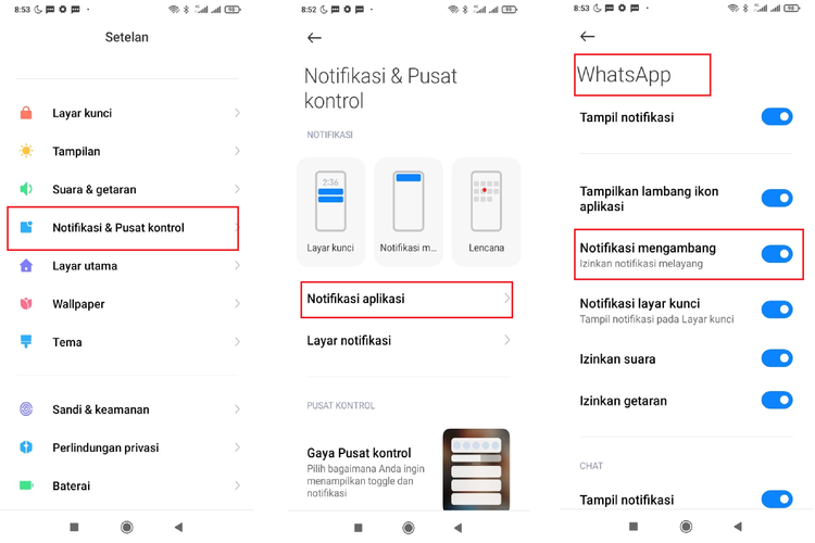 1. Cara agar notifikasi WhatsApp tidak muncul di atas layar lewat menu pengaturan HP