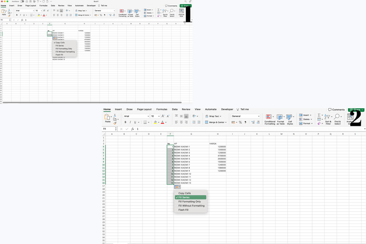 Klik “Fill Series” Nantinya nomor yang sama akan otomatis berubah sesuai urutan
