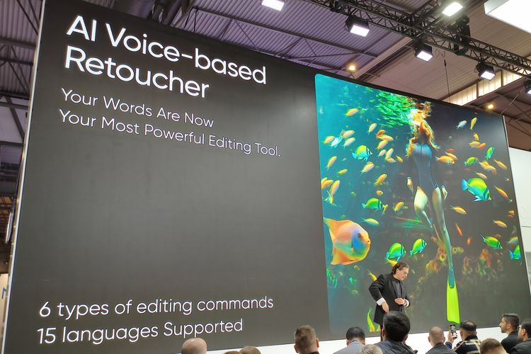 Kompas.com/BILL CLINTEN Fitur AI voice-based Retoucher di Realme yang dipamerkan di MWC 2025 dan dihadiri KompasTekno,Senin (3/3/2025).