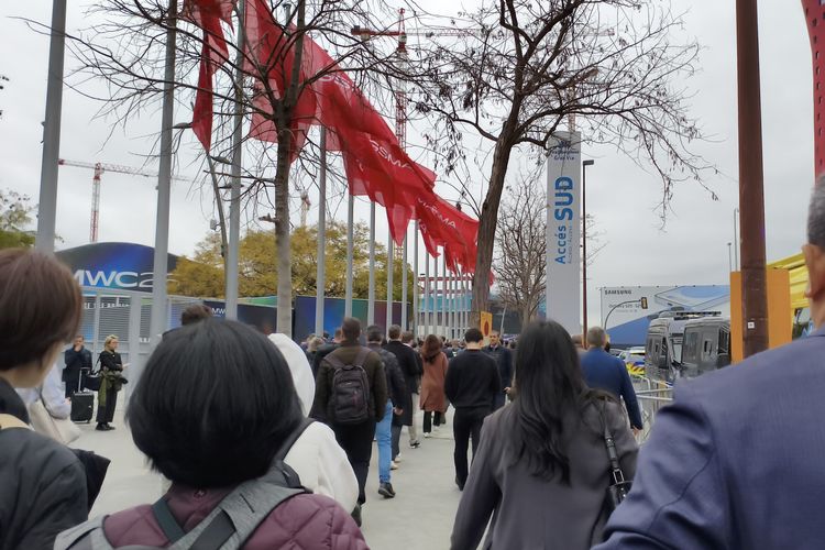 Menurut petugas yang berjaga,para tamu sudah berdatangan sejak pukul 07.00 pagi waktu setempat. Berdasarkan informasi resmi,tamu MWC 2025 sendiri berkisar 100.000 orang.