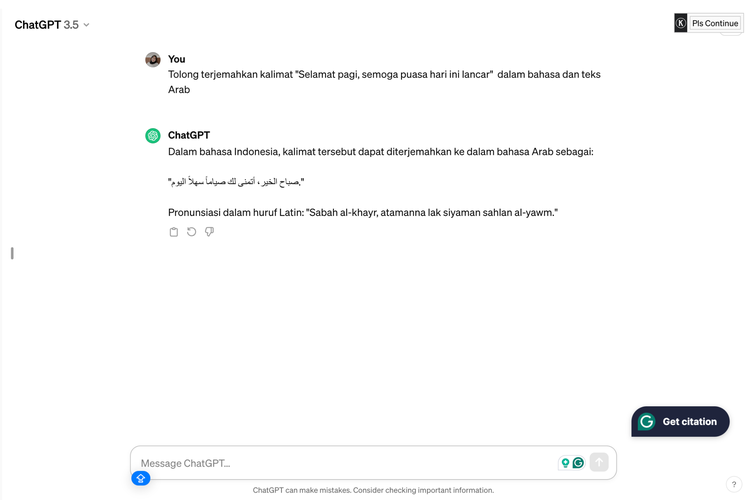 Cara buat tulisan Arab lewat ChatGPT