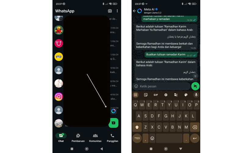 Cara buat tulisan Arab lewat Meta AI WhatsApp