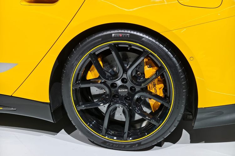 Kaliper di keempat cakram mobil ini berwarna kuning senada dengan warna bodi-nya. Warna ini kontras dengan velg gelap yang membuat kaliper tampak lebih menyala.