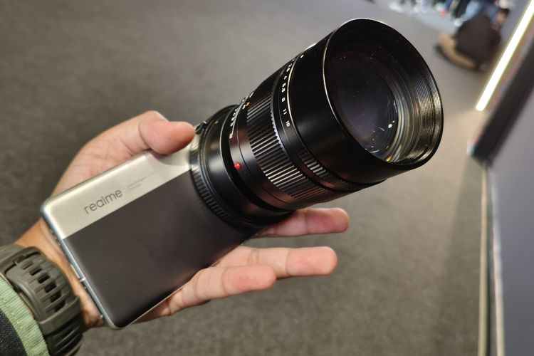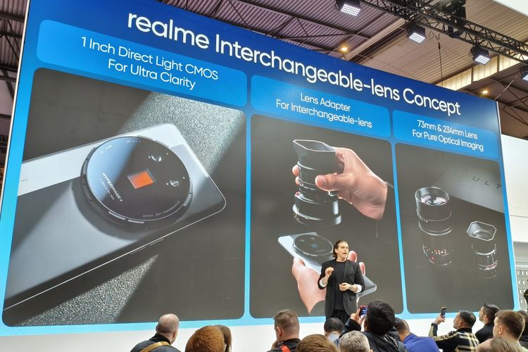 KOMPAS.COM/Bil Clinten Realme mengumumkan produk purwarupa Realme Interchangeable-Lens Concept di ajang Mobile World Congress (MWC) Barcelona 2025. Ponsel ini merupakan smartphone pertama di dunia yang bisa dipasangi dengan lensa kamera eksternal yang biasa ditemui di kamera DSLR.