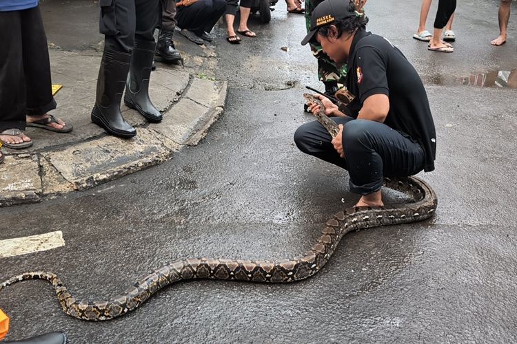 TANGERANG SELATAN,KOMPAS.com - Warga di Perumahan Taman Mangu Indah,Pondok Aren,Tangerang Selatan,digegerkan dengan penemuan seekor ular sanca sepanjang empat meter pada Selasa (4/3/2025).