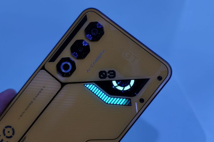 Selain lampu RGB,punggung Neo 3 GT 5G juga kini memiliki desain ala robot (mecha) yang lebih menonjolkan warna utamanya ketimbang warna hitam.
