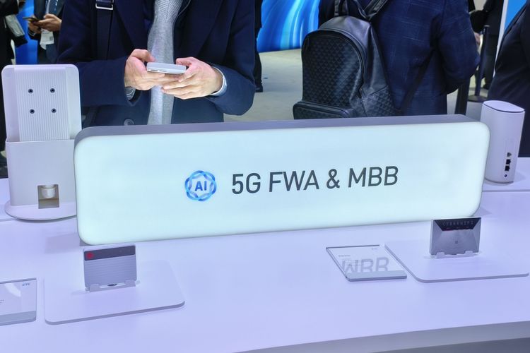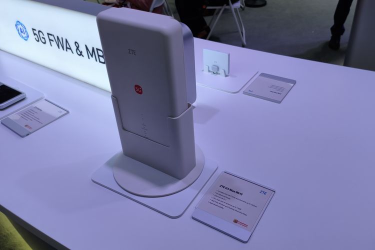 Kompas.com/BILL CLINTEN Perangkat FWA ZTE G5 Max Wi-Fi di booth ZTE di MWC Barcelona 2025,Selasa (4/3/2025).